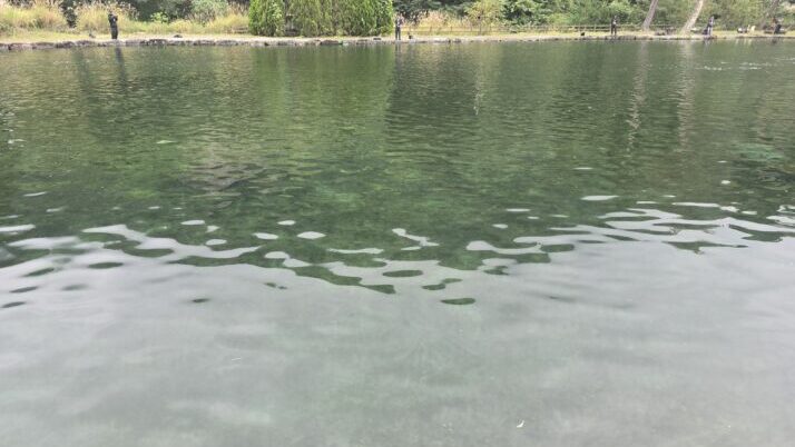 冒頭でも書きましたが水質はクリア。魚は底で沈んでる魚(死魚)や白点病の魚もいましたがまあ許容範囲内で比較的コンディションの良い釣り場だなという感じ。一方で池の広さの割には魚の数が少ないかなという印象も受けました。