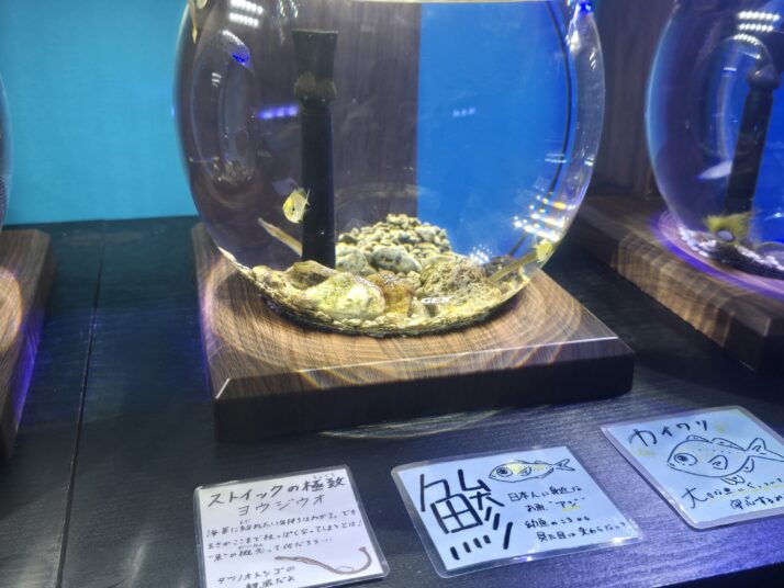 入ってからの印象は手作り感が強い水族館だなという印象ですね。手書きのポップアップが多くその魚の特徴を分かりやすく伝えているのが印象的でした!