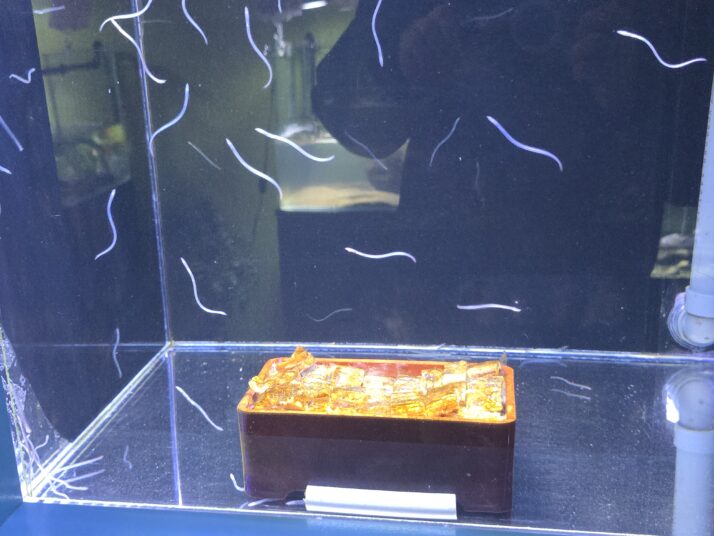 面白い試みだなと思ったのが食用利用される魚とその食品サンプルを同じ水槽に入れて展示されていること!笑